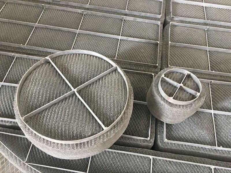 Knitted mesh mist eliminator has so many types and shapes, the common structure of knitted mesh mist eliminator is the knitted wire mesh and grating. And some of the mist eliminators has the simplest structure: knitted wire mesh without any grating, which is also known as demister pad.